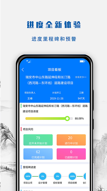 建文工程项目管理APP,抓细节、控进度、降成本、增效益! 助力项目成本“算的准、控的住、管的细”; 助力工程进度“大项控得住,小项精细化”。 极简设计,一屏统揽、一键追踪,一键直达,开启数字化项目协同办公新模式!!