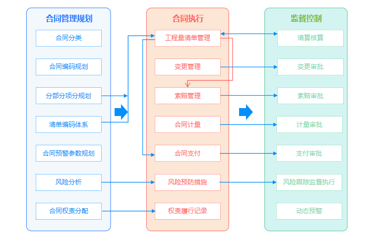 合同管理从工作包定义开始,包括合同起草、合同签订、文本管理、结算安排、执行进展、合同变更、到实际结款以及对合同结款情况统计分析的全方位管理控制,建立一套针对项目的完善招采策划和控制体系,实现招采内容明确、边界清晰,招标平台化、电子化,确保招标采购客观公正。