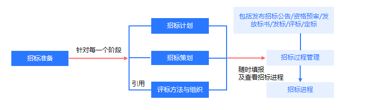 EPC工程项涉及到各种类型的招标,如设计招标、咨询招标、采购招标、施工招标、监理招标等众多招标工作,系统根据项目的总体规划或设计概算,通过系统编制招标计划、发布招标信息、管理招标过程并进行评标定标。同时支持投标方通过招标方的招采门户、移动APP能够方便得到招标方的各种文件。