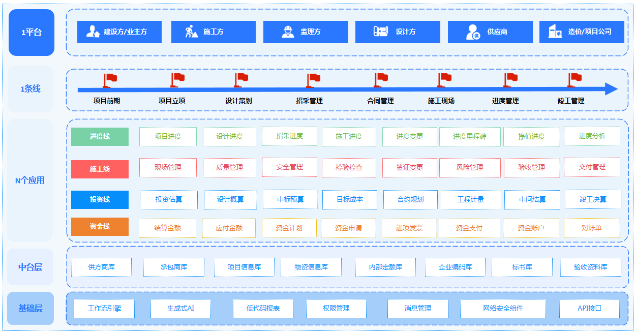 打造建设投资方、施工方、监理方、设计方、供应商等多方协作平台。